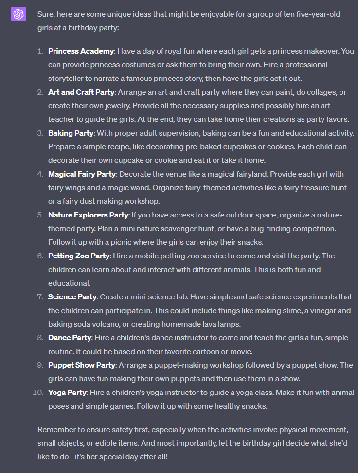新しいビジネスを始めていますか? 猫の名前を探していますか? この例では、5 歳の女の子の誕生日パーティーのアクティビティのアイデアをブレインストーミングします。