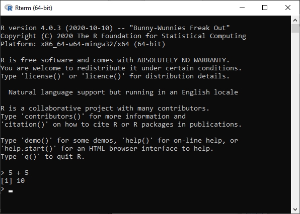 以下のスクリーンショットは、Windows PC で R を実行したときにどのように表示されるかを示しています。