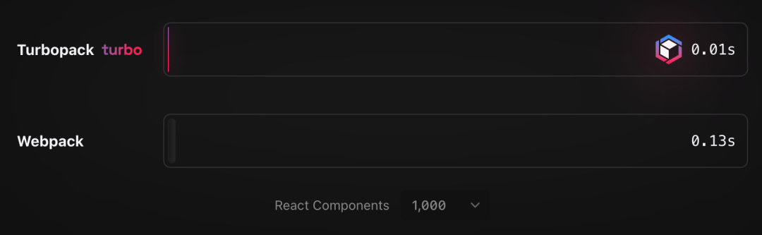 Turbopack には開発に必要な最小限のリソースのみがパックされているため、起動時間が非常に速くなります。 3000 モジュールを含むアプリでは、Turbopack の起動には 1.8 秒かかり、Vite の起動には 11.4 秒かかります。