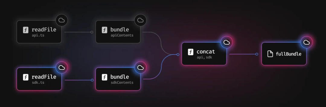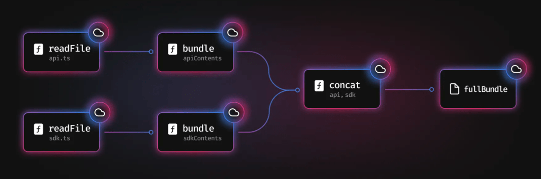 最初に、api.ts と sdk.ts の 2 つのファイルで readFile を呼び出します。 これらのファイルはパッケージ化され、結合されて、最終的に fullBundle が取得されます。 これらすべての関数呼び出しの結果は、後で使用できるようにキャッシュに保存されます。