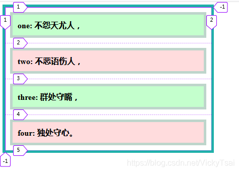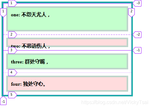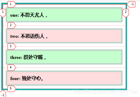 1,2,3...n.. または -n,...-3,-2,-1,したがって、ここでの整数値は正の整数または負の整数にすることができます。ただし、0 はできません。0 という名前の行がないためです。<custom-ident>, の場合、その名前の行のみがカウントされます。 その名前を持つ行が十分に存在しない場合は、この位置を見つけるために、すべての暗黙的なグリッド線がその名前を持つものとみなされます。
