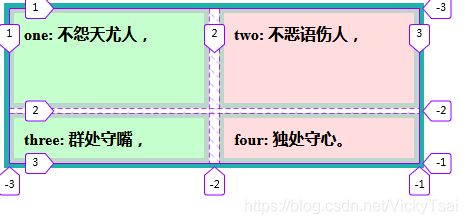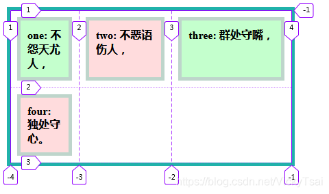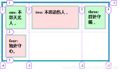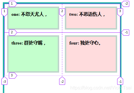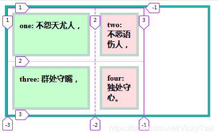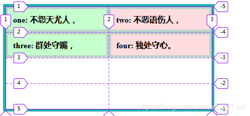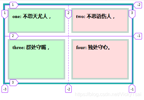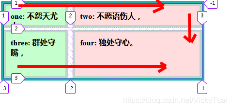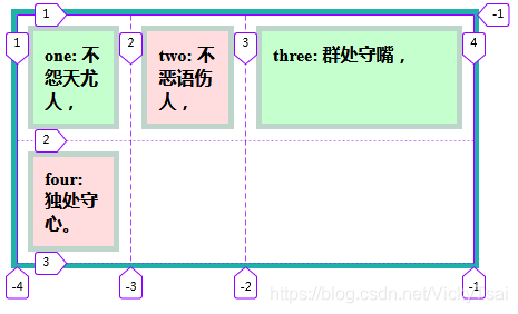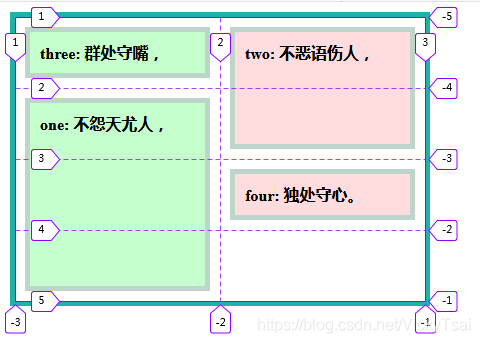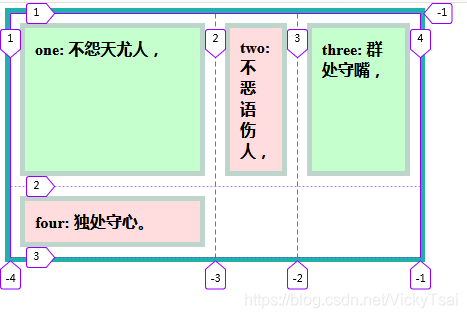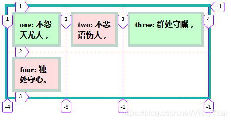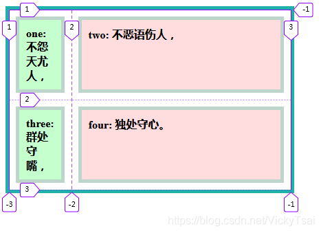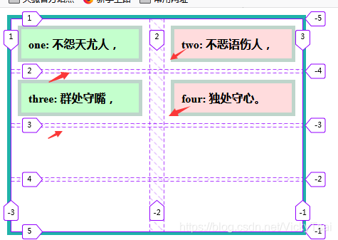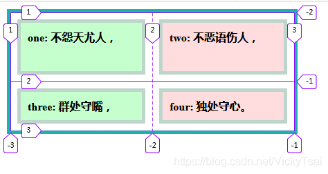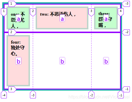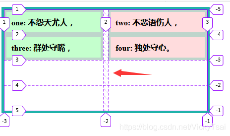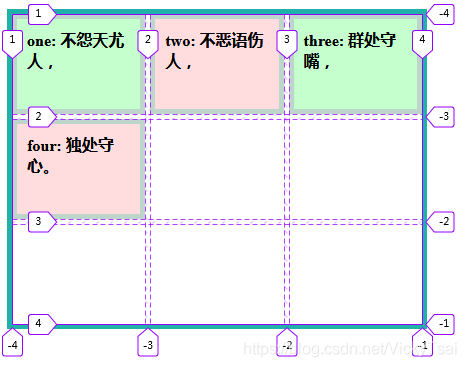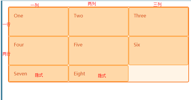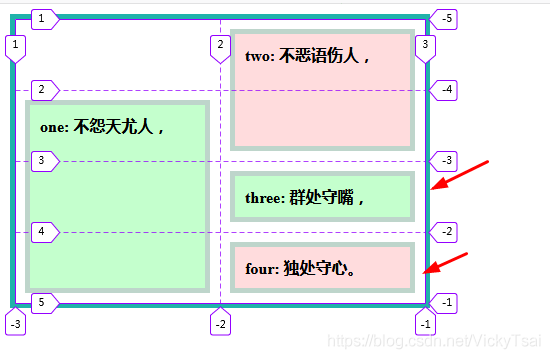 grid-template-rows: 100px 100px; + 3 列grid-template-columns: 1fr 1fr 1fr;