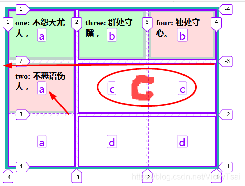 c という名前の界にグリッド プロジェクトを設定します: grid-area: c;