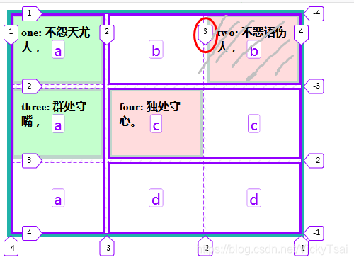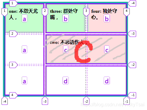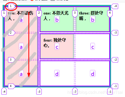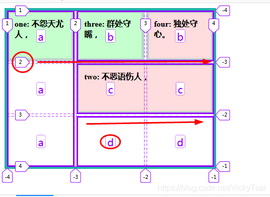 -start 」という名前の指定された行がある場合、最初のそのような行が開始位置としてグリッド項目に提供されます。c-start 行はありません ,c 領域のみに名前が付けられます ,しかし、c 領域の開始行は暗黙的に c-start 行として指定されます ,明示的に指定される前に別の行 c-start がない限り ,この領域の開始行は c-start。