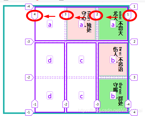 | ② 明示的なグリッド領域、行トラック、列トラック(短縮属性)を集中的に設定します | grid-template |