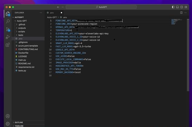 最後に、これらのAPIを.envファイルに配置します。