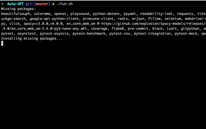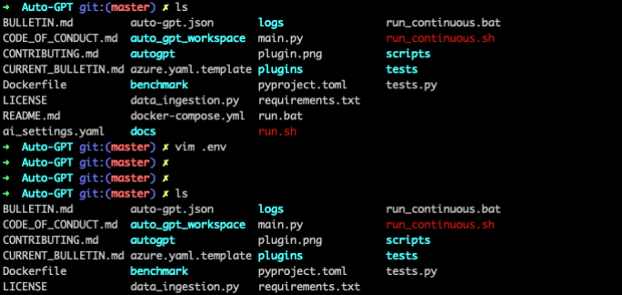 次の run.sh を実行して AutoGPT を実行します。