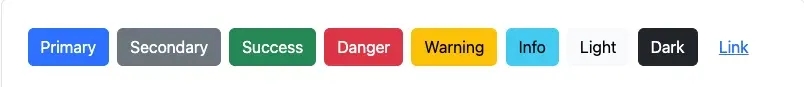 <button type="button" class="btn btn-primary">Primary</button><button type="button" class="btn btn-secondary">Secondary</button><button type="button" class="btn btn-success">Success</button><button type="button" class="btn btn-danger">Danger</button><button type="button" class="btn btn-warning">Warning</button><button type="button" class="btn btn-info">Info</button><button type="button" class="btn btn-light">Light</button><button type="button" class="btn btn-dark">Dark</button><button type="button" class="btn btn-link">Link</button>
